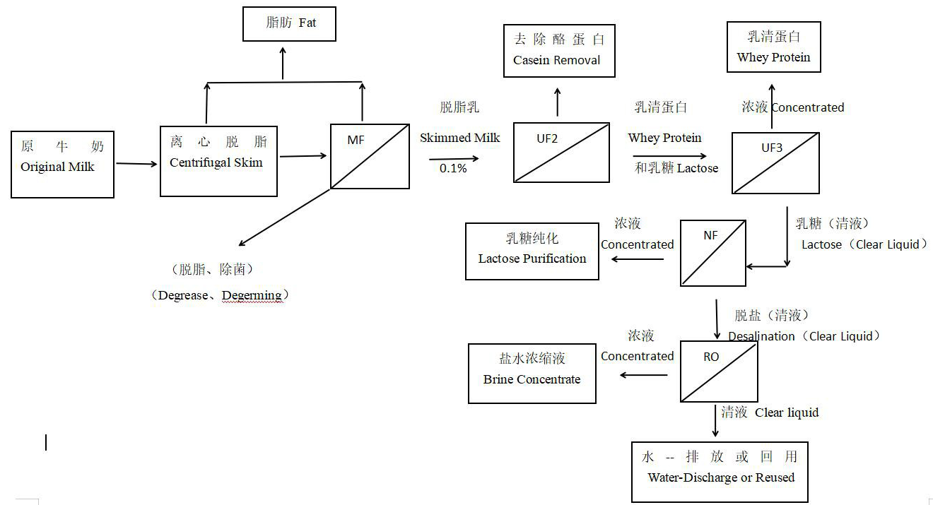 멤브레인 미세 여과 기술은 저온 살균 및 화학 방부제를 대체하여 유제품의 박테리아, 효모 및 곰팡이를 효과적으로 차단하여 유제품의 효과적인 성분이 침투하고 냉간 살균의 이점이 있습니다. 신선한 우유를 탈지하고 탈지 우유를 미세 여과 막을 통해 여과합니다. 마지막으로, 여과되고 멸균 된 탈지유를 80 ℃/6s 에서 살균하여 우유의 효소를 불활성화시키고 저장 중에 단백질의 분해로 인한 우유의 분해를 방지합니다. 이 채택 된 공정은 실온에서 신선하게 유지 될 수 있으며 멸균 된 우유와 같은 맛을냅니다. 멤브레인 기술과 다른 기술을 결합한 이 복합 살균 시스템은 우유의 열처리 강도를 감소시키면서 살균 효과를 보장합니다. 그것은 또한 신선한 우유의 원래 맛을 유지하고 단백질의 열 변성을 피할 수 있습니다, 효과적으로 제품의 품질과 유통 기한을 향상시킵니다.